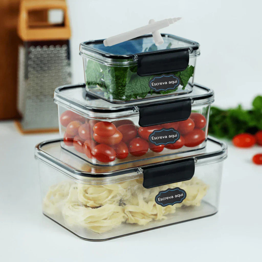 Alta vedação: Com tampas herméticas e travas laterais, seus alimentos ficam protegidos e conservados.